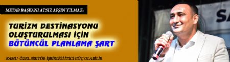 METAB BAŞKANI ATSIZ AFŞIN YILMAZ: “TURİZM DESTİNASYONU OLUŞTURULMASI İÇİN BÜTÜNCÜL PLANLAMA ŞART”