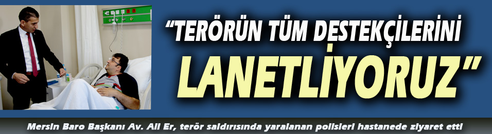 Mersin Baro Başkanı Av. Ali Er, Mersin’de dün akşam saatlerinde polis servis aracının geçişi sırasında bomba yüklü motorsikletin, teröristlerce uzaktan kumanda ile patlatılması sonu yaralanan 17polis  ve 1 sivil vatandaşı tedavi gördüğü hastanede ziyaret etti.