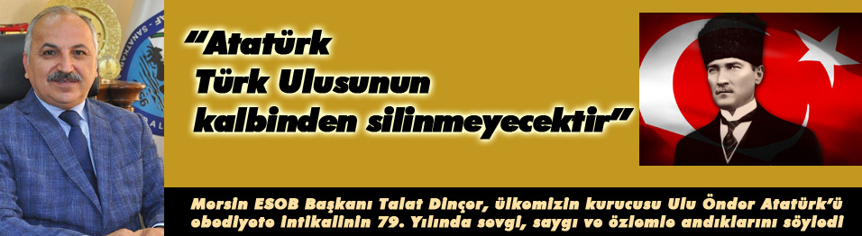Mersin ESOB Yönetim Kurulu Başkanı Talat Dinçer, ülkemizin kurucusu Ulu Önder Atatürk’ü ebediyete intikalinin 79. Yılında sevgi, saygı ve özlemle andıklarını söyledi