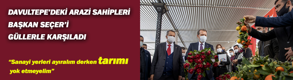 Mezitli Davultepe Mahallesi’nde sanayi sitesi yapılması planlanan narenciye arazisi sahipleri, bir önceki meclis toplantısında kendilerine destek vermesi dolayısıyla Başkan Seçer’i Kongre ve Sergi Sarayı’nın kapısında karşıladı. Ellerindeki zeytin ve narenciye dallarıyla teşekkür eden arazi sahipleri, “Siz bize yardımcı oldunuz, Allah sizden razı olsun” ifadeleri ile teşekkürlerini iletti. Arazi sahipleri, Başkan Seçer’e üzerinde teşekkür metinlerinin yazılı olduğu güller, narenciyeler ve zeytin dallarını sundu.