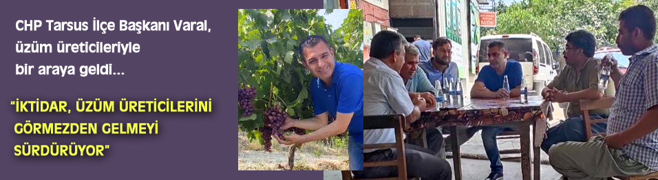 CUMHURİYET Halk Partisi (CHP) Tarsus İlçe Başkanı Av. Ozan Varal, üreticilerin mazot, gübre, ilaç, işçilik maliyetlerinin geçtiğimiz yıllara göre misli misli artmasına rağmen, iktidarın üzüm üreticilerini görmezden gelmeyi sürdürdüğünü söyledi.