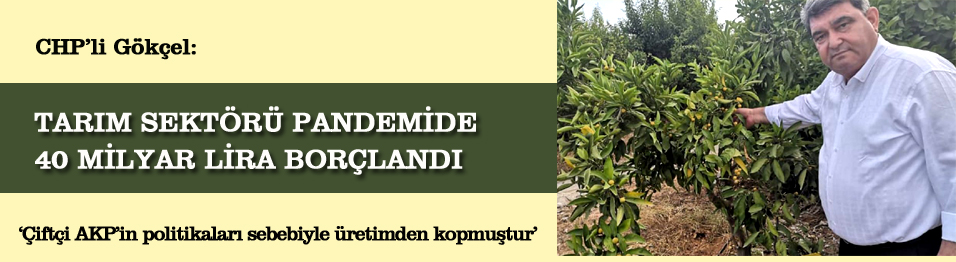 Tarım sektöürnün bankalara olan borcu son 2 yılda 40 milyar liraya artarak 150 milyar227 milyon liraya ulaştı. CHP Mersin milletvekili ve TBMM Tarım, Orman ve Köyişleri Komisyonu Üyesi Cengiz Gökçel, “Çiftçi borçları 2019’dan bu yana 40 milyar lira artarak 150 milyar lirayı buldu. Buna göre çiftçinin son 1 ayda 1,5 milyar lira daha borçlandığını görüyoruz” dedi.