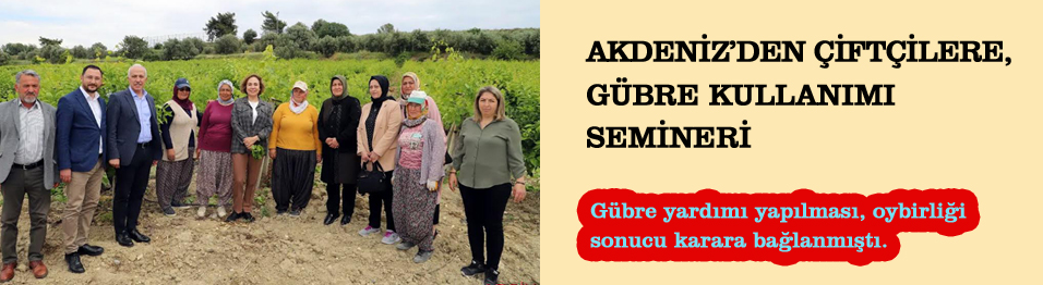 Akdeniz Belediyesi; ilçe sýnýrlarýnda üretim yapan çiftçilere saðladýðý ücretsiz gübre desteðinden sonra, gübrenin zamanýnda, verimli ve etkin kullaným yöntemlerinin anlatýlacaðý bilinçlendirme seminerleri baþlatýyor.