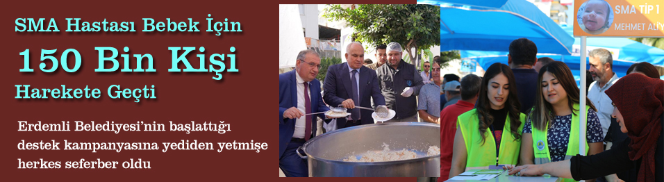 SMA hastası Mehmet Ali bebek için 150 bin nüfuslu Erdemli ilçesi harekete geçti. Erdemli Belediyesi’nin başlattığı destek kampanyasına yediden yetmişe herkes seferber oldu. Kampanya kapsamında tüm Türkiye’den destek bekleniyor.