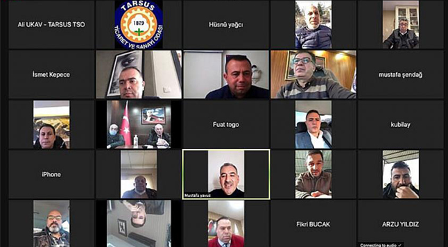 Tarsus Ticaret ve Sanayi Odası'nda yılın ilk meclis toplantısı yapıldı. Tarsus TSO Meclis Başkanı Eyüphan Eyüboğlu yönetiminde zoom aracılığıyla gerçekleştirilen toplantıda meclis üyeleri ekonomik gelişmeleri, kendi sektörlerine yansıyan durumları paylaşarak görüş alışverişinde bulundu.