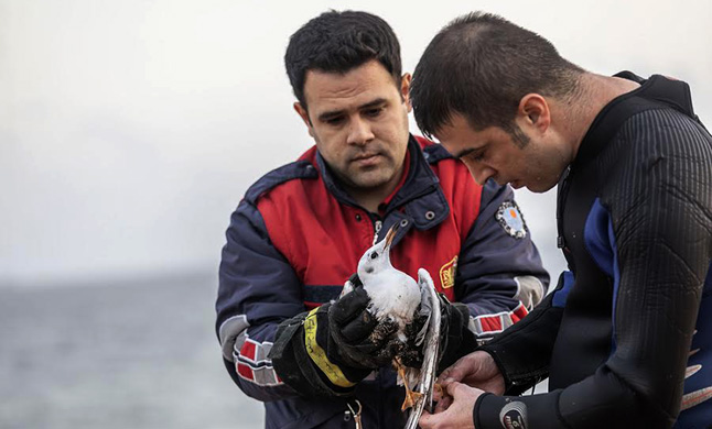 Mersin Büyükşehir Belediyesi İtfaiye Dairesi Başkanlığı’nda görevli dalgıç adamlar, ayağına misina dolandığı için uçamayan ve denizin yüzeyinde çırpınan martıyı kurtardı. Martıyı karaya bırakmak için çıkan dalgıçlar, martıyı kurtarmak amacıyla yardıma gelen ve motoruna misina dolandığı için karaya vurma tehlikesi yaşayan tekneyi ve sahiplerini de kurtardı.
